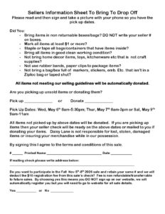 Sellers Information Sheet To Bring To Drop Off